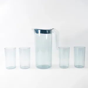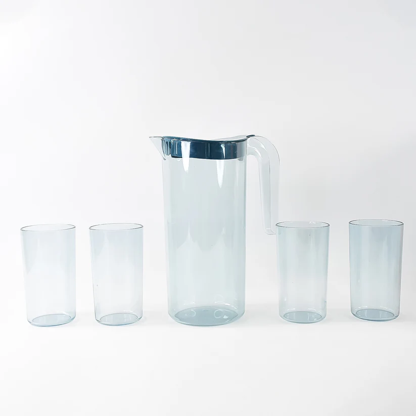 Crystal Premium Jug – 1500ml & 4 Pcs Glass (1500 ML / 300 ML Approx) Food-Grade, BPA-Free, Unbreakable Plastic Jug with Lid and Easy-Pour Design (5 Pcs Set)